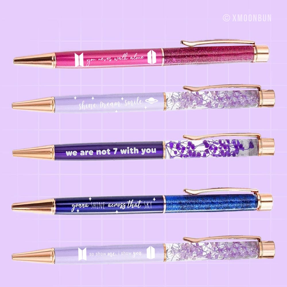 If you're in need for BTS themed pens for studies, notes and sketching. These ball pens are perfect for you and your ARMY friends. Designs inspired by BTS songs of RM Wildflower, Mikrokosmos, Magic Shop, Spring Day and Bulletproof The Eternal.