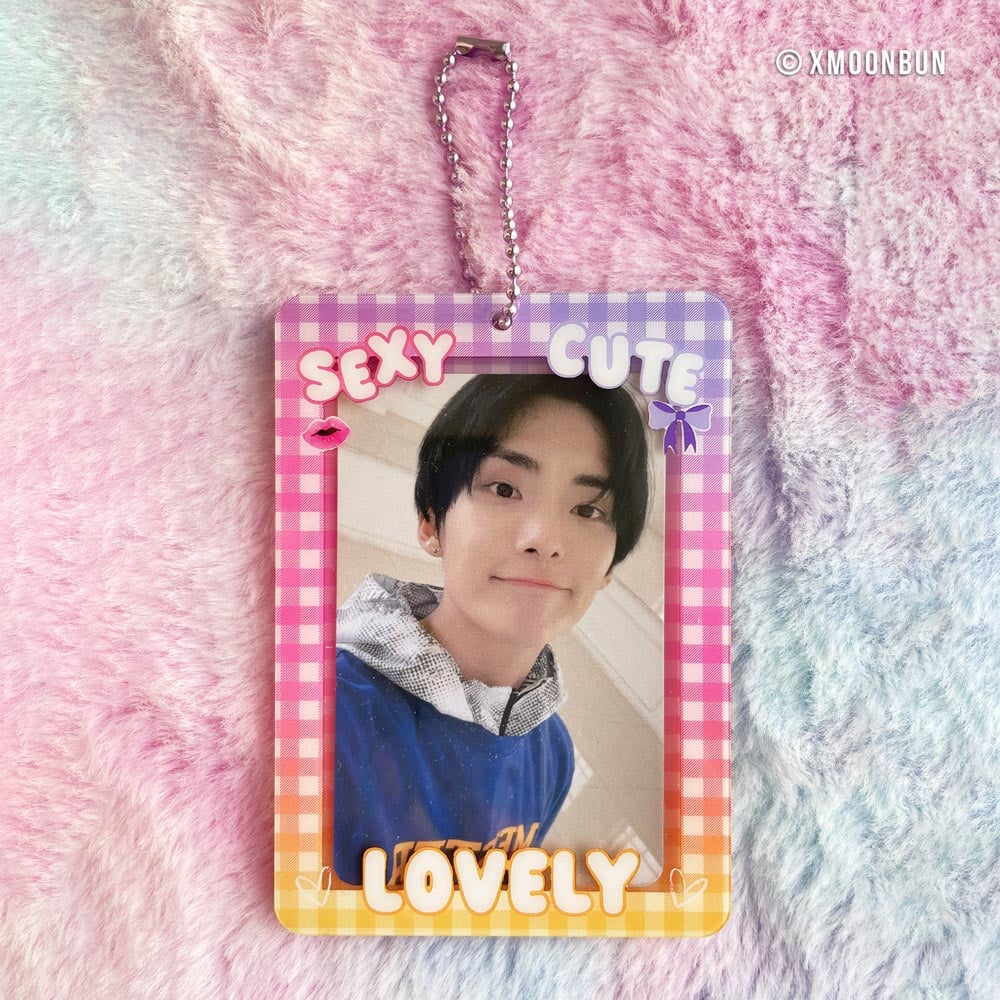 Display your loved photocard in this colorful designed pc holder keychain. With this good mood color scheme it fits to many fashion styles.